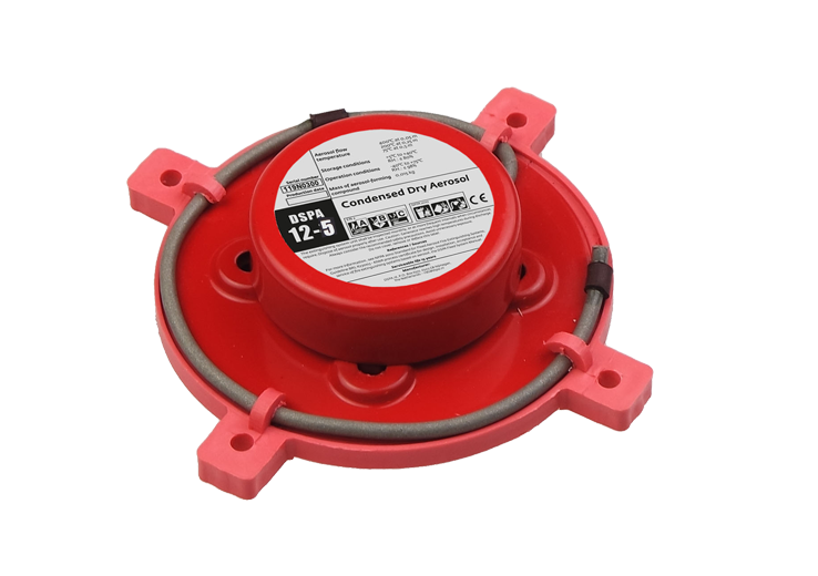Aerosol DSPA 12-5 kann als hochwirksames ortsfestes Löschsystem eingesetzt werden. Ein DSPA-Generator steht nicht unter Druck und wird in einem Raum oder Abschnitt installiert, der geschützt werden muss. Nach der Aktivierung wird eine Aerosolwolke erzeugt, die sich volumetrisch ausbreitet, den Raum überflutet und das Feuer löscht. Die DSPA-Generatoren sind hauptsächlich für den Einsatz in normalerweise unbesetzten Bereichen ausgelegt und sind bei Bränden der Klassen A, B, C und F wirksam.